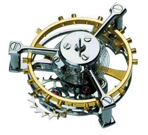 Fundamentals: Caruso will escapement and balance wheel mounted on a rotating frame around the axis of the stage. It does not set the fixed gear, there are two separate and complementary running gear train, both of which are driven by the third gear. That is, in a double gear train, one controls the rotation of the frame and the other powers the escapement.