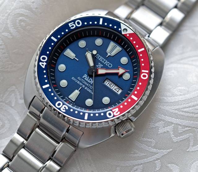 PADI Edition watch, unlike the previous Seiko's low-key design, looks much brighter. Dial with a metal blue solar radiation pattern, in the sun can show a rich color.