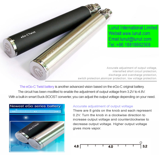 eGo-C Twist variable voltage battery, eGo Twist battery fit with CE4/CE5/CE6/CE7/CE8CE9,Vivi Nova,Vivi Tank, T2 Atomizer