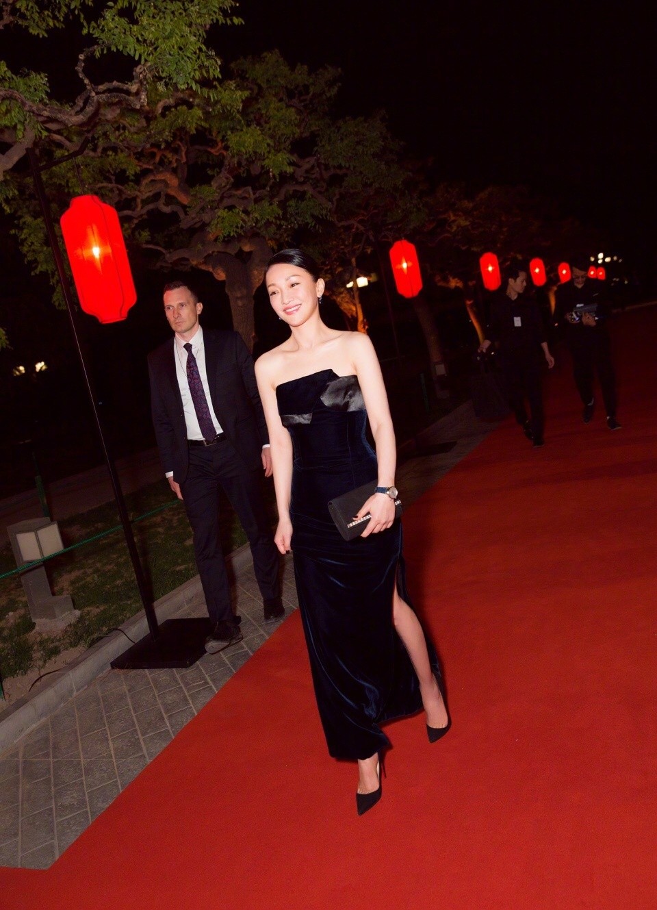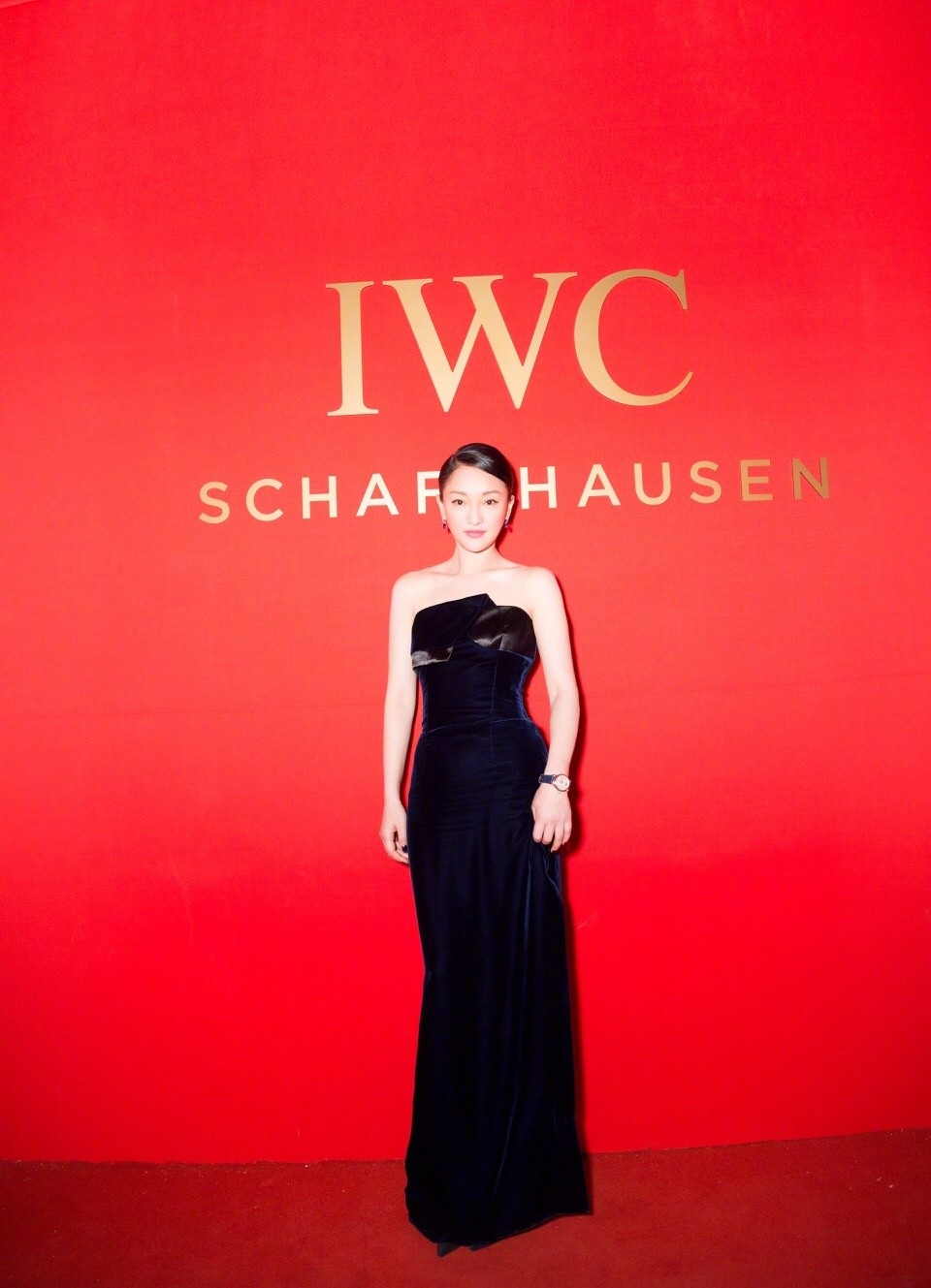 Later in the evening, at IWC held a "For the Love of Cinema" theme movie night, a gala dinner, Zhou Xun dressed in navy blue velvet evening dress, is still wearing a new Levinci moon phase automatic watch 36, Elegant and confident, full of mature beauty.