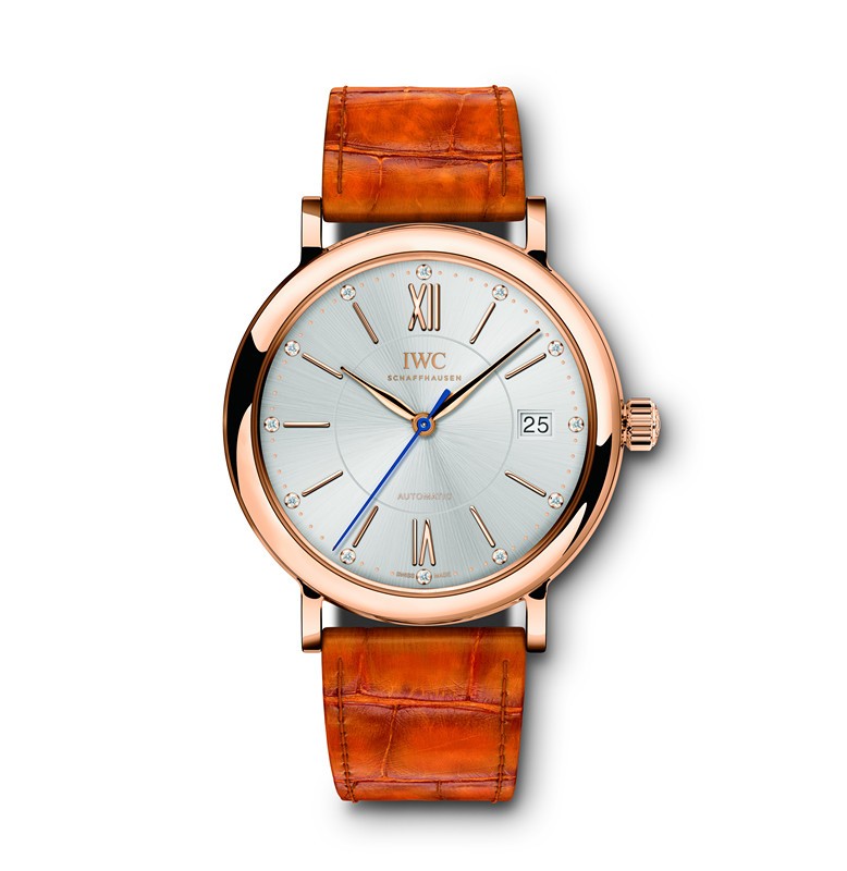 For thirty years, Portofino Fino automatic watch has an elegant and timeless three-pointer design. This 37 mm Portofino Fino automatic dial dial silver, inlaid with 12 diamonds, case and crown are 18K rose gold, elegant and elegant. Dial inlaid with gold-plated time scale and Roman numerals 12 o'clock and 6 o'clock time scale, concise atmosphere. Orange crocodile leather strap, no lack of calm and lively.